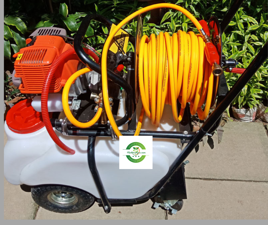 ফোর স্টোক ইঞ্জিন বিশিষ্ট ট্রলি সিস্টেম এই পাওয়ার স্প্রে মেশিনের পানি ধারন ক্ষমতা ৫০ লিটার। যেহেতু এটা ফোর স্টোক ইঞ্জিন তাই এখানে অকটেন ও মবিল আলাদ ব্যবহার করতে হয়। প্রতি লিটার অকটেন বা মবিলে দেড় ঘন্টা নিরবিচ্ছিন্নভাবে স্প্রে করা সম্ভব। এই স্প্রে মেশিনের সাথে ১৫০ ফুট লম্বা পাইপ এবং একটি নজেল যুক্ত করা আছে। তবে কেউ চাইলে এর সাথে আরও ৩০০ ফুটের অধিক লম্বা পাইপ যুক্ত করে নিতে পারবেন। সেই সাথে নিজের পছন্দমত স্প্রে গান সংযুক্ত করা যাবে।
